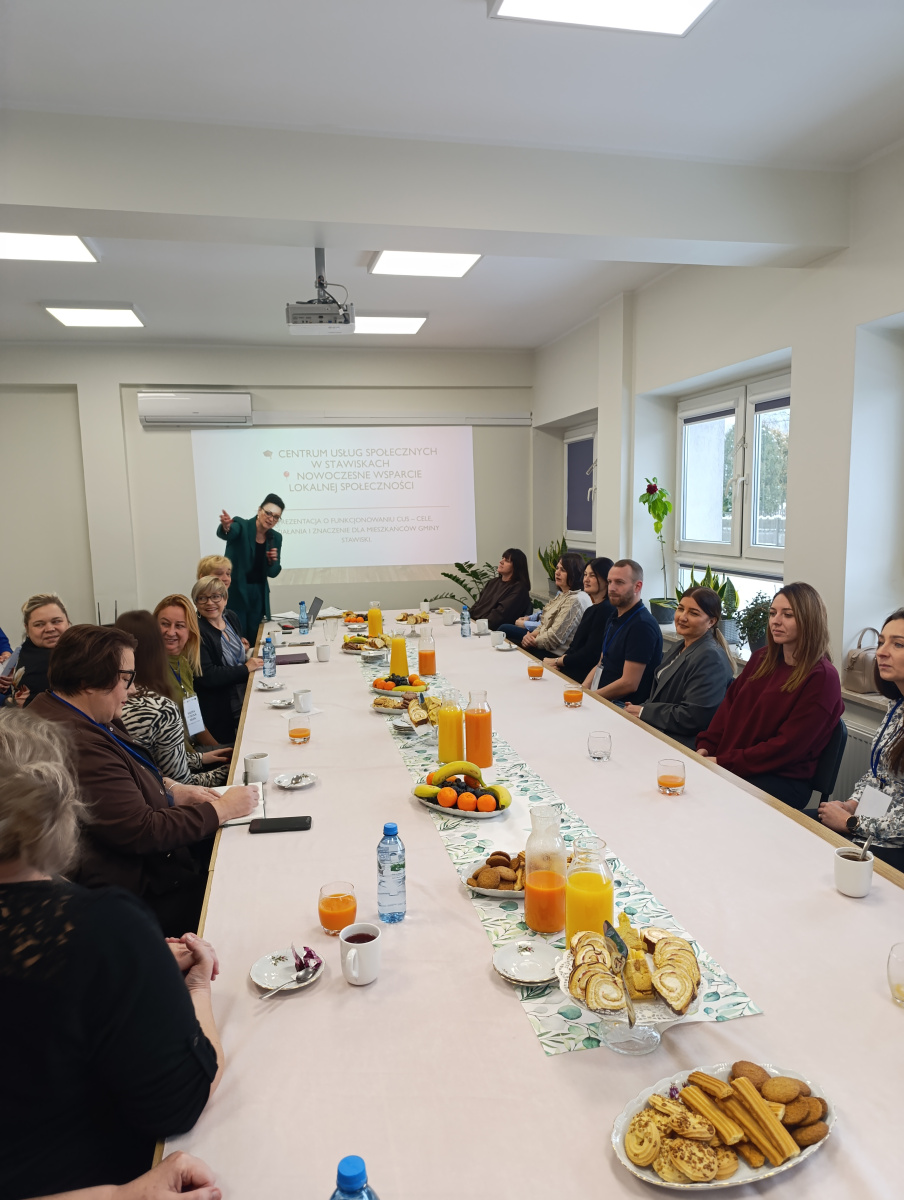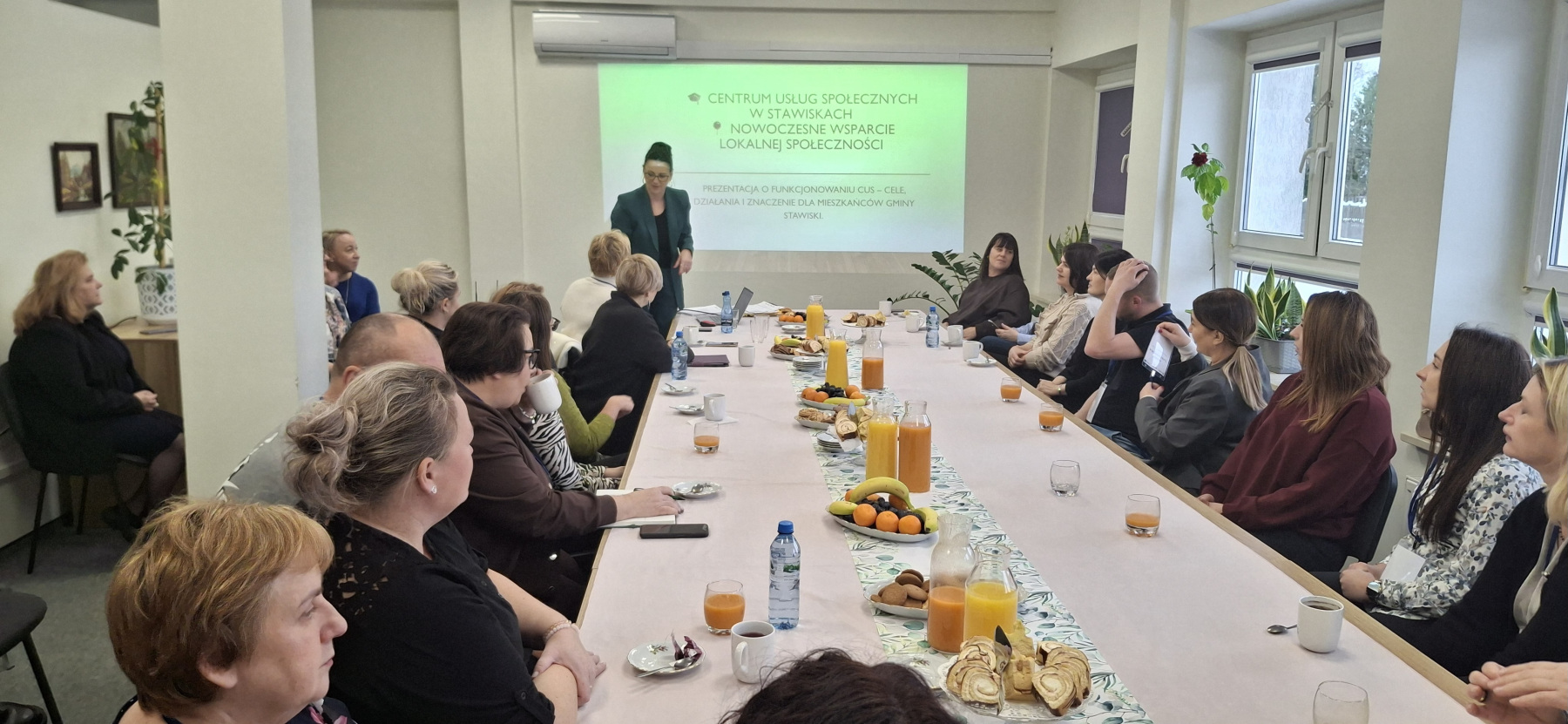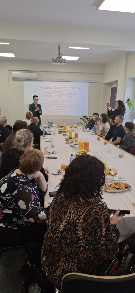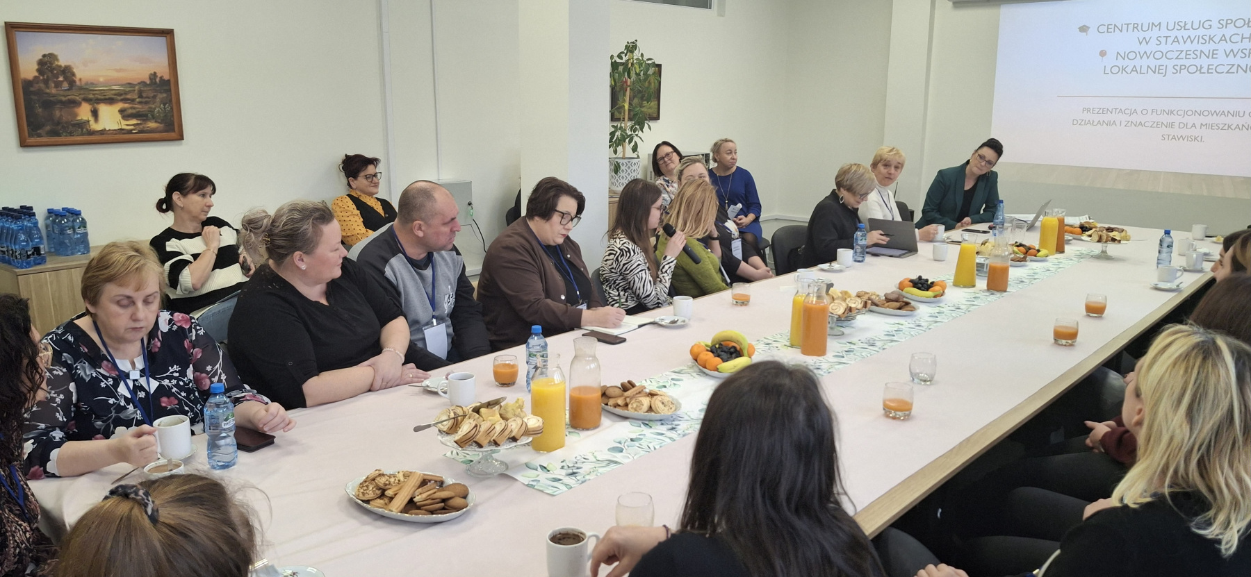 W dniu 26 listopada 2025 roku w Centrum Usług Społecznych w Stawiskach odbyła się kolejna wizyta studyjna uczestników szkolenia zorganizowanego przez Regionalny Ośrodek Polityki Społecznej w Toruniu, realizujący projekt „Koordynacja spójnej polityki społecznej Kujaw i Pomorza”.